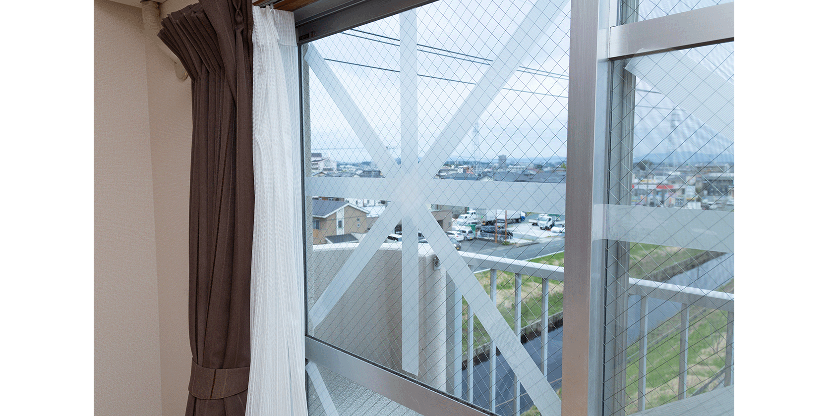 ここで注目すべきは風による飛来物があることです。よくガラスにガムテープなどで養生する光景を見ますが、これは風の強さに耐えかねてガラスが割れるシチュエーションよりも、瓦や看板、木片や石などの飛来物でガラスが割れるリスクを考えてのこと。同様に飛散防止フィルムを貼ったり、ガラス自体を防災防犯ガラスや強化ガラスに変えたり、雨戸やシャッターを設置することで、台風による風や飛来物の対策としているのです。