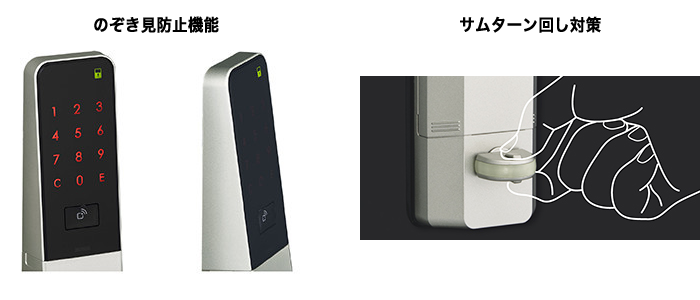 横からのテンキー表示が見えにくくなっており、暗証番号の「のぞき見」がしにくい構造です。